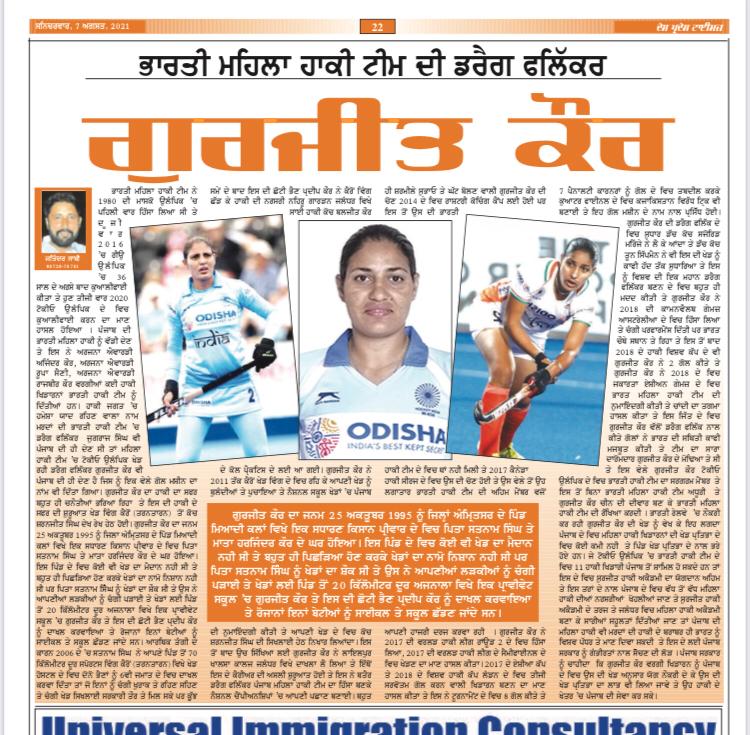 - Punjab’s Gurjit Kaur Selected for Indian Women Hockey Team for Olympic Games